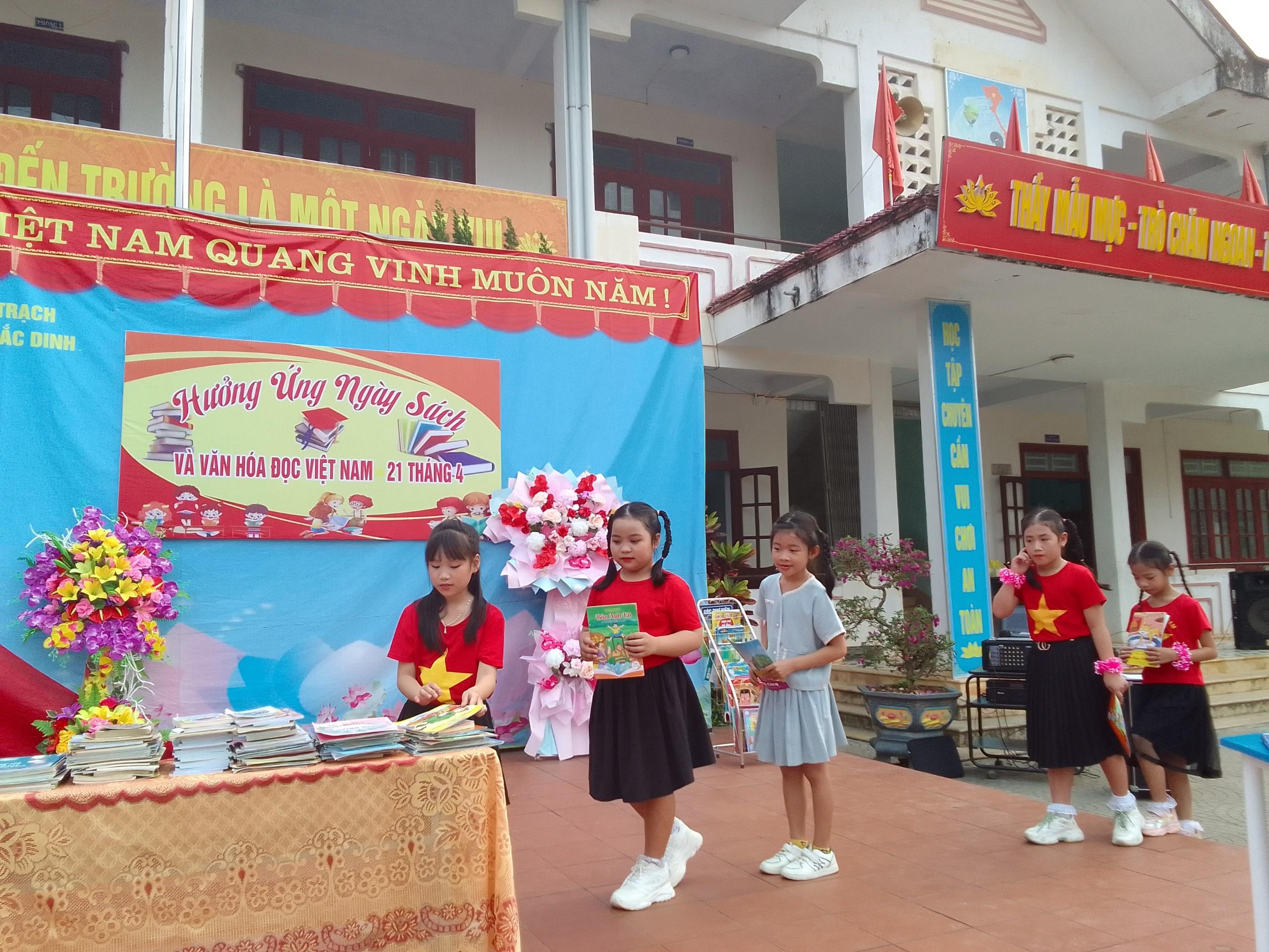 Thực hiện Công văn số 93/KH-PGDĐT ngày 07/03/2023 của Phòng Giáo dục và Đào tạo Bố Trạch về việc tổ chức Ngày Sách và Văn hóa đọc Việt Nam lần thứ 2 năm 2023. Ngày 21/04/2023 Trường TH Bắc Dinh đã tổ chức thành công Ngày sách và Văn hoá đọc Việt Nam với chủ đề “ Sách: Nhận thức- Đổi mới- Sáng tạo”.